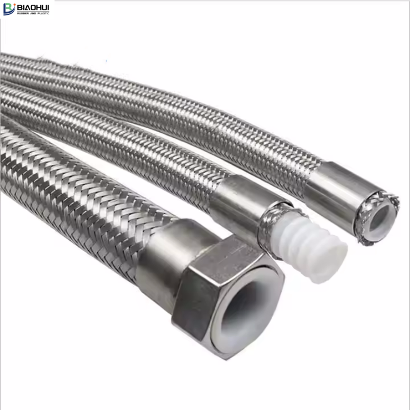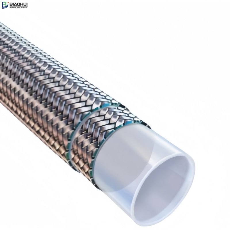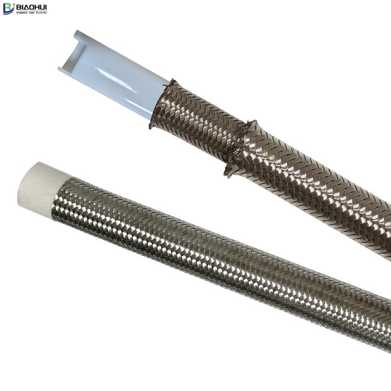 The hose is manufactured from antistatic PTFE resin with double, bunch braided SS304 stainless steel, high tensile braid. Non-sticking, easy to clean; Non-inflammable.