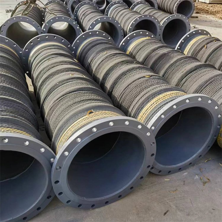 Dredge suction & discharge hose can be used for gravel transport ship to deliver gravel in many places, and this is the so-called gravel suction & discharge hose. Its outstanding feature is that it has excellent abrasion resistance, so it works well in delivering gravel which is highly abrasive. Gravel suction & discharge hose is composed of three parts: tube, reinforcement and cover. Tube is made from synthetic rubber (NR, SBR or BR), making hose resistant to abrasion and corrosion. Reinforcement is made from high tensile spiral steel wires, making hose resistant to kink and fatigue. Besides, the high tensile reinforcement makes hose have solid structure and bear high working pressure. Cover is made from high quality synthetic rubber (NR, SBR or BR), making hose resistant to abrasion, corrosion, weather, ozone, aging and heat. The hose can be connected to pipeline tightly by flanges. And it has excellent flexibility.