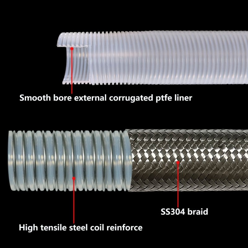 Cover:single or double AISI 304 or 316 stainless steel wire outer braid