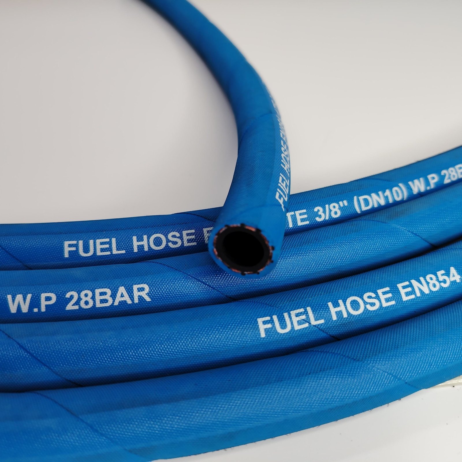 EN 854 1TE textile reinforced hydraulic hose is suitable for hydraulic control lines and it is mainly used to deliver hydraulic fluids. It is composed of three parts: tube, reinforcement and cover. The tube is made from high quality oil resistant synthetic rubber, making the hose can be used to deliver oils smoothly. The reinforcement is made from one layer of braided textile, making the hose lightweight, flexible and easy to operate. The cover is made from high quality oil and weather resistant synthetic rubber, making the hose have longer service life. Besides, the hose can eliminate the vibration of the hydraulic lines.