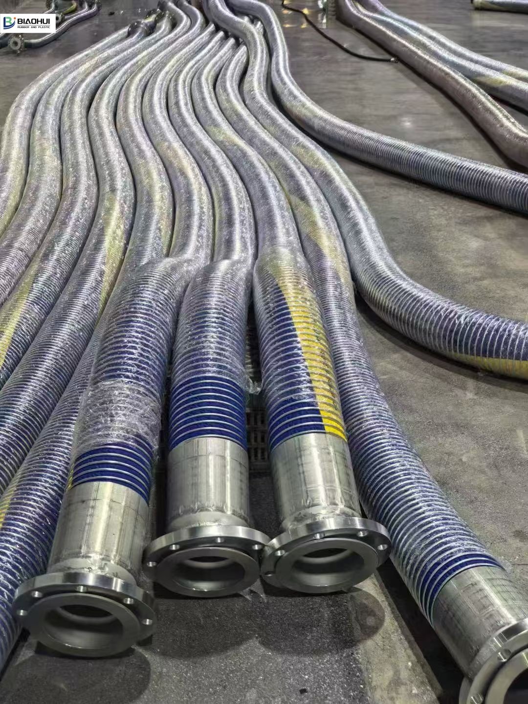 Marine composite hose is suitable for the suction and discharge of petroleum products for ship to ship and ship to shore. It can be used to transfer all types of oils and aromatics in both positive and negative pressure. The hose is resistant to abrasion and aging. Besides, it works well in large pressure difference environment.